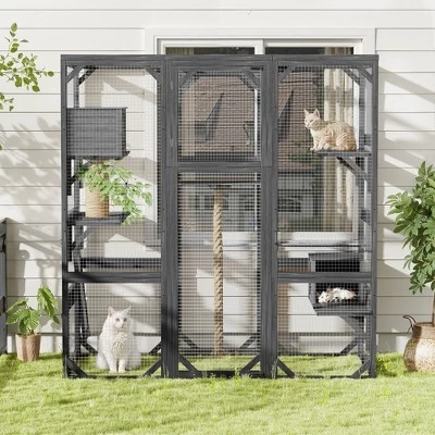 Constructed from premium pine wood and reinforced with galvanized wire mesh, this cat cage outdoor ensures durability and protection from the elements while providing a safe space for climbing and exploration. The unit features dual front and rear doors for easy access, simplifying cleaning, feeding, and interaction with your pets.