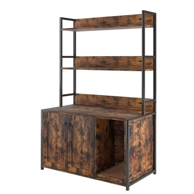 Large Litter Box Enclosure,Cat Litter Box Enclosure Furniture with 2-Tier Storageand 2 Doors,Hidden Cat Cabinet End Table with Shelves