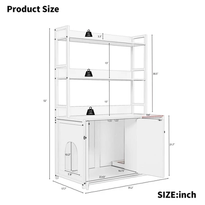 - Fit Most Litter Boxes: The interior dimensions of the kitty cabinet are: 22.6”Lx16.7”Dx21.7”H, which can accommodate common litter box sizes. Whether you use a small, medium, or large litter box, it can be easily installed in our cat litter box cabinet.