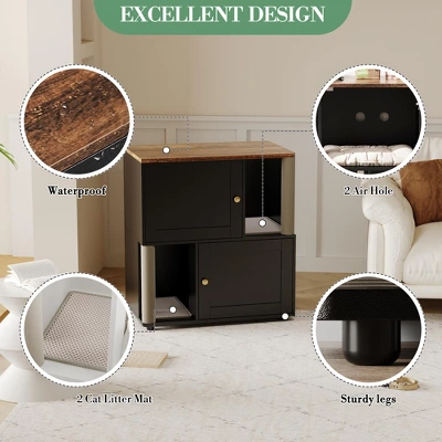 - 2-Tier Cat Litter Box Furniture with Scratching Posts – Dual-room enclosed cabinet conceals odor and litter, functions as a hidden litter box or cozy cat bed perch. Modern farmhouse end table design supports up to 220 lbs.