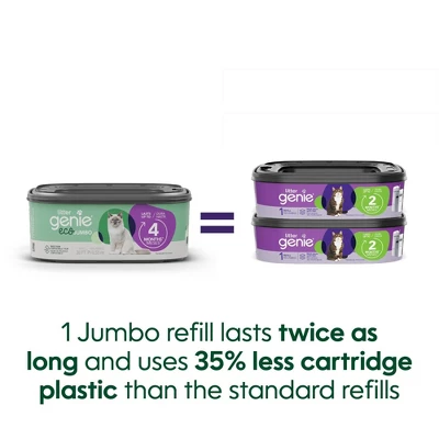 Looking for compostable bags for your Litter Genie refills? The Litter Genie Eco Jumbo Refill is the ultimate solution for cat owners to reduce plastic waste. With 28 feet of refill made from compostable film, the Jumbo refill provides up to 4 months of hassle-free use for one cat, eliminating the need to frequently buy and replace refills.