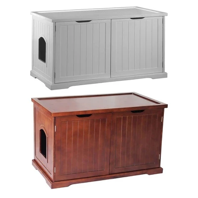 - PARTITION WALL: Has a removable partition wall creating additional space to store litter, scoop, and other kitty supplies; Color: (1) White and (1) walnut