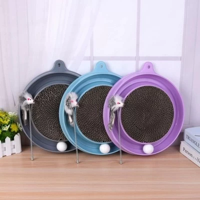 Scratch & Play in One – Combines a scratch pad, vertical post, and rolling ball toy for triple the fun. Keeps claws healthy and boredom away.Built-In Rolling Ball – Encourages active play and taps into your cat’s natural hunting instincts—perfect for daily entertainment.Sturdy & Pet-Safe Design – Made from layered corrugated cardboard with a stable base to prevent tipping during intense play.Supports Healthy Behavior – Promotes nail maintenance, reduces stress, and helps prevent furniture damage.No Assembly Needed – Lightweight and compact. Ready to use right out of the box and easy to move around your home.