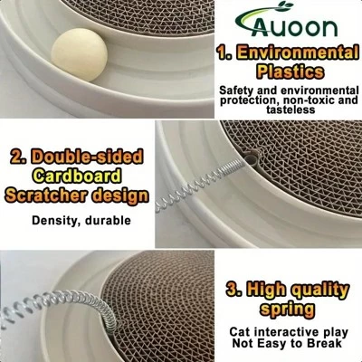 Scratch & Play in One – Combines a scratch pad, vertical post, and rolling ball toy for triple the fun. Keeps claws healthy and boredom away.Built-In Rolling Ball – Encourages active play and taps into your cat’s natural hunting instincts—perfect for daily entertainment.Sturdy & Pet-Safe Design – Made from layered corrugated cardboard with a stable base to prevent tipping during intense play.Supports Healthy Behavior – Promotes nail maintenance, reduces stress, and helps prevent furniture damage.No Assembly Needed – Lightweight and compact. Ready to use right out of the box and easy to move around your home.