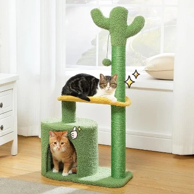 - Stylish Aesthetic: Say goodbye to unsightly pet furniture. Our cat tower features an attractive green cactus and flower design that seamlessly blends with any modern room style, infusing your home with vitality and freshness. Lightweight and portable, it can be easily moved around to suit your needs.