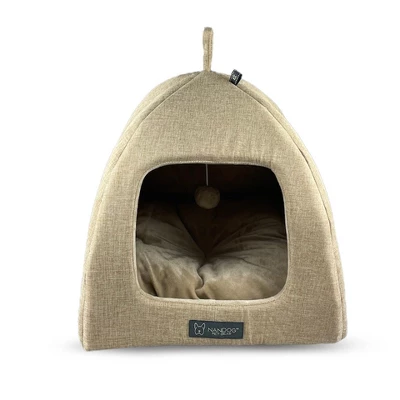 The Nandog Pet Gear Cassel Cat Hut in Brown offers a cozy and stylish retreat for your feline friend. Designed with a modern, minimalist aesthetic, this cat hut complements any home decor while providing a comfortable space for your cat to relax. Crafted from soft, cuddly fabric, it ensures a warm and inviting environment for your pet. Measuring approximately 16 inches by 16 inches, it’s an ideal size for most cats.