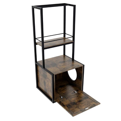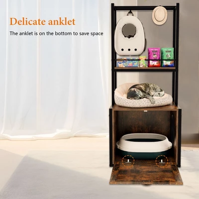 The 55″ Refined Litter Box Enclosure with storage shelves and hanging clothes racks is the ultimate solution for keeping your pet’s essentials organized and your home tidy. Designed for cats and small to medium-sized dogs, this multi-functional piece serves as a litter box enclosure, drying rack for pet clothes, and storage unit for your pet’s everyday items.This furniture includes two spacious shelves, one featuring a drying rod for pet clothing and the other with a guardrail to prevent items from falling. You’ll have plenty of space to store your pet’s food, toys, grooming supplies, and accessories.The addition of two hanging clothes racks allows you to dry pet clothing, while the guardrail ensures that everything stays in place. Whether you need a play station, feeding area, or a place to store your pet’s gear, this stylish and practical enclosure does it all.Bring home the 55″ Refined Litter Box Enclosure today and enjoy an organized, tidy, and comfortable space for your furry friends!
