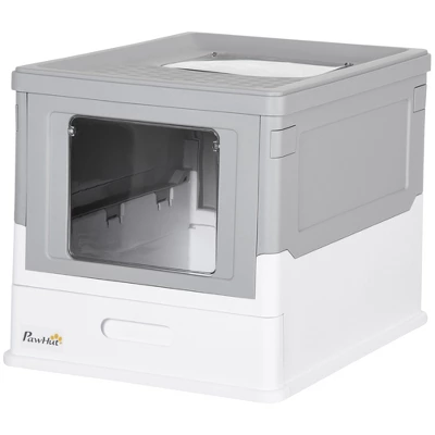 - Pull Tray: Pull the bottom tray out to refill the litter. The enclosed housing can effectively prevent cat litter from splashing on the ground, preventing clean-up. The top can be removed for cleaning, and a scoop is included.