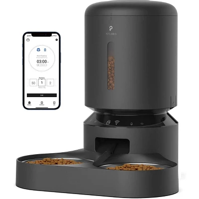 - SMART APP CONTROL: Feed your pet anytime, anywhere. WiFi automatic cat feeder can connect to 5GHz and 2.4GHz WiFi network. Program and monitor your pet’s meals anywhere anytime through the PETLIBRO App on your iOS or Android smartphone. You can set up to 10 meals per day with 1-50 portions per meal. You can check the feeding records to ensure your cat or dog has been fed on a set schedule by APP and also can be controlled from multiple family members smartphones. Wider capability, faster and more stable connection.