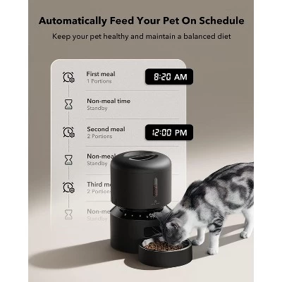 PETLIBRO Automatic Cat Feeder, Pet Dry Food Dispenser Triple Preservation with Stainless Steel Bowl & Twist Lock Lid, Up to 50 Portions 6 Meals Per Day, Granary for Small/Medium Pets. Freshness in Every Bite: Patented rotor on our auto cat food dispenser in the bottom of the tank and the secure twist-lock lid to keep pets from getting food. Built-in desiccant bag and the sealing strip, Granary auto feeder for cats uses triple seal lock the freshness to keep food fresh and crunchy. Easy to Set up and Program: PETLIBRO timed cat feeder can set 1-6 meals daily and up to 50 portions per meal (20ml each portion). Use the easy-to-read tilt LED panel to adjust your pet’s feeding schedule and monitor battery power. The Granary auto cat feeder is also equipped with a manual feeding button to easily reward your pet (up to 5 portions). Dual Power Supply: Easily monitor the pet food level through the transparent window and replenish food in time. Besides the USB-C adapter, the dog automatic feeders can also use 3 alkaline D batteries (not included) as a backup power source to ensure that it can be used even if the power goes out, giving you peace of mind when feeding your furry friend. Personalized Meal Call: Stay close to your pet even if you’re not at home. PETLIBRO Automatic pet feeder can record a 10-second message, and the number of recordings played can be individually set from 0-5 times, so your pet won’t disturb your sleep while your pet is eating in the middle of the night. BPA-free and Easy to Clean: For your pet’s health, PETLIBRO cat automatic feeders and accessories are BPA-free. The tank lid, tank, tank base, and food bowl of Granary dog automatic feeders are removable for thorough cleaning. And the built-in infrared sensor in the food outlet can stop dispensing food when the food outlet is blocked.