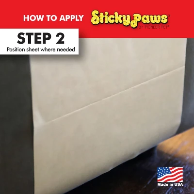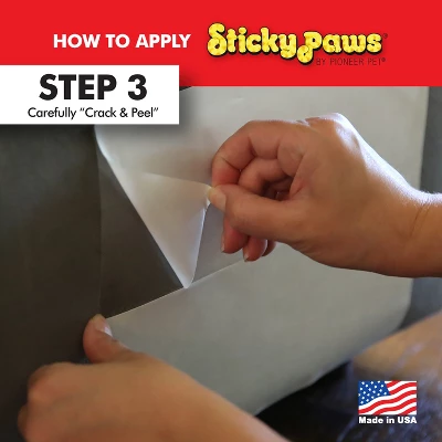Sticky Paws!® is specially formulated to have just the right amount of tactile feel cats can’t stand. Conserve and protect your furnishings with a true original. Manufactured from inert and non-toxic materials, the one and only Sticky Paws!® controls cat scratching behavior humanely. Transparent, medical-grade adhesive sheets apply directly to furnishings and are harmless to cats and furniture when used as directed. Always test a small piece of Sticky Paws® on an inconspicuous area before applying. Sticky Paws® is ineffective on surfaces treated with non-stick and/or stain-repellent products, such as ScotchgardTM. Replace weekly.