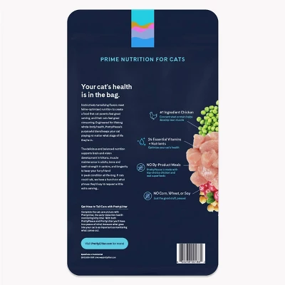 PrettyPlease Premium Dry Food’s ingredients are individually selected to maximize nutrition without compromising taste. Since health begins with what we put into our bodies, our balanced and delectable formula will promote vitality for your cat—inside and out. Developed to fit unique feline needs, PrettyPlease provides dynamic amino acids for ideal muscle tone, Omega-6 fatty acids for a silky coat, and micronutrients for cellular function. All of our exceptional ingredients give your cat the energy and support they need to lead a strong and active life.