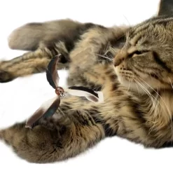 Unique Bargains Cat Teaser Windmill Style Handheld With Bell White Brown