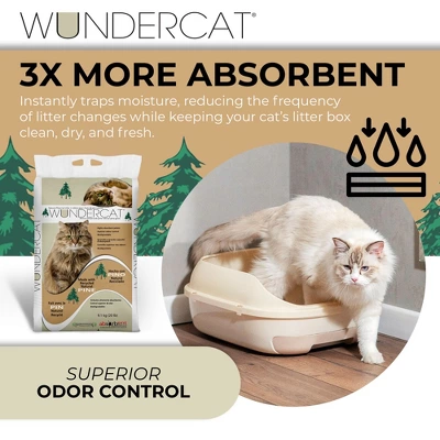 Wundercat Natural Pine Cat Litter is the eco-friendly alternative to clay-based litter, offering superior absorption, odor control, and sustainability for a cleaner, fresher home. Made from 100% reclaimed wood, this biodegradable and compostable litter is gentle on the environment while providing powerful moisture and odor absorption for your cat’s litter box. With 3x the absorbency of clay, Wundercat instantly traps moisture and odors, neutralizing ammonia without the need for synthetic perfumes or chemicals. The soft, cracked pine pellets break down into sawdust when wet, locking in odors and making cleanup fast and hassle-free. Designed with low-tracking properties, this natural litter helps maintain cleaner air and floors, making it a great choice for multi-cat households and allergy-sensitive cats and owners. Plus, it’s lightweight and easy to handle, so you can transport, pour, and change litter effortlessly.