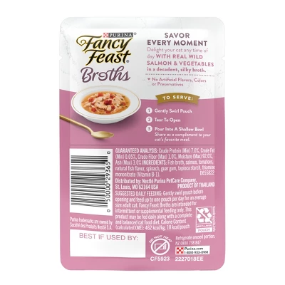 Create a gourmet dining experience for your darling cat with Purina Fancy Feast. We make this soft cat food complement with real, recognizable ingredients you can see, so you can feel good about offering it to your feline friend. With the unmistakable taste and tender texture your cat craves, this simply crafted recipe is a true feast for her senses. Serve a pouch of this delectable gourmet cat food complement daily as an addition to your cat’s complete and balanced cat food diet, and watch as she delights in the lickable, savory broth and hand-selected ingredients found in every bite.