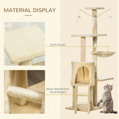- Multifunctional Center: Multi-use cat activity center with sisal rope scratching posts, perches, basket, condo hideaway, climbable ladder, hammock and hanging mouse toys for endless entertainment.
