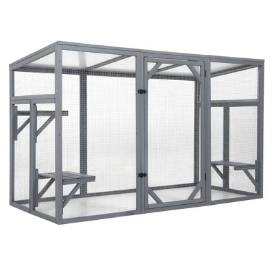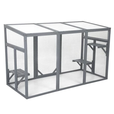 - Crafted from high-quality cedar and bite-resistant galvanized mesh, this Patio Cat Catio House with 3 Platforms is built to withstand various weather conditions and protect your pets from predators, ensuring long-lasting use and security.