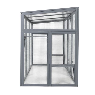 - The Outdoor Wood Cat Enclosure is designed to provide a secure and spacious environment for your feline friends, featuring waterproof sun sheet roofing and enclosed mesh walls that ensure their safety while allowing them to enjoy the great outdoors.