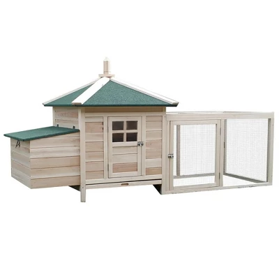 - – Outdoor Chicken Coop Kit Info: Overall Dimensions: 77.25″ L x 30″ W x 38.25″ H.