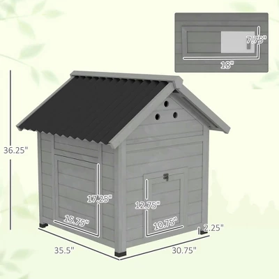 Give your garden ducks a comfy home with the duck house. Clean-up is a breeze thanks to an openable roof and removable floorboard. Ducks freely come and go via a front door while ventilation holes keep the air circulating. When it’s time to collect eggs or check on your flock, a generously sized side door makes duck handling hassle-free. Low-maintenance and designed with pets in mind, this makes a great shelter for your flock of feathered friends.- Color: Light Gray, Black- Materials: Fir Wood, Plastic- Overall Dimensions: 30.75″ L x 35.5″ W x 36.25″ H- Item Weight: 34 pounds- Main House Dimensions: 26.5″ L x 30″ W x 32.25″ H- Door Size: 10.75″ W x 12.75″ H(Front), 15.75″ W x 17.25″ H(Side)- Off the Ground: 2″ HPackage Includes:- 1 x Duck House- 1 x Manual Resenkos Rabbit Hutch, Duck Cage Hutch,Chicken Coop, Duck Coop, Wooden Duck House with Openable Roof & Double Doors, Light Gray