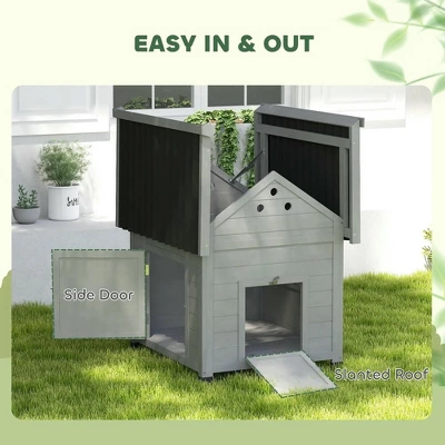 - Outdoor Use: This small chicken coop features a sloped roof and fir wood construction. It makes rain roll down to the ground and withstands the elements, keeping a warm house for your feather friends.