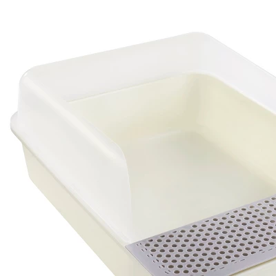 The Helix litter box is a spacious and sanitary option for cats of all sizes. Three raised walls shield against accidental messes, while the front remains easily accessible. The Helix features a litter catching grate designed to collect the excess debris from your cats feet as they get up to leave. Durable and convenient, this litter box is easy to clean and is also available in a variety of colors.