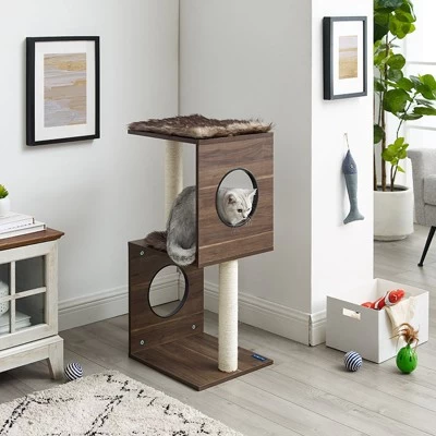 The Sheree Collection combines rest and play in a sleek and modern design. Your cat can scratch the built-in sisal post, curl up on the cushion, or climb and jump throughout its innovative, enriching design. Available in a variety of neutral tones, the Sheree will not only look beautiful in your home, but the high-quality materials make this cat tree dependable and long lasting.