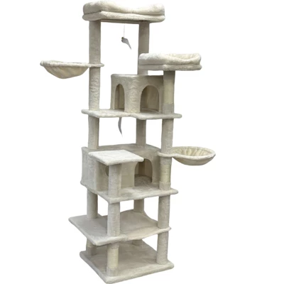 - Cozy Hideouts and Relaxation Spots: Two enclosed condos offer private retreats for shy or sleepy cats, while the suspended hammock provides a gently swaying lounging area. The variety of resting options accommodates different feline personalities and moods throughout the day.