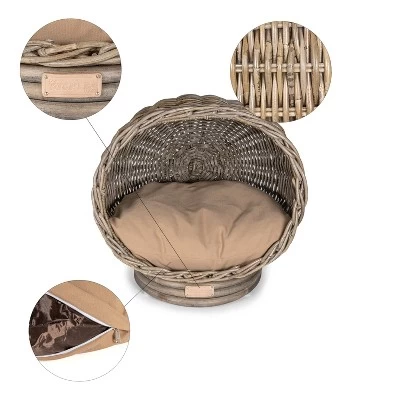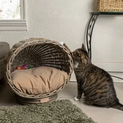 Bring some style to your cat’s naptime with our dome shaped woven cat bed. Designed with a retro shape and elements from bohemian decor, this bed will look great in any home. Despite its slim profile, it’s great for any young or grown cat!