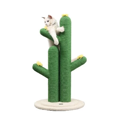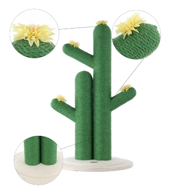 Keep your cats happy and healthy with our stylish and sturdy cactus cat scratching post. Covered in durable jute for scratching, with flower toys on the arms and a wide base. Small cactus post design is perfect for a bedroom or living room.