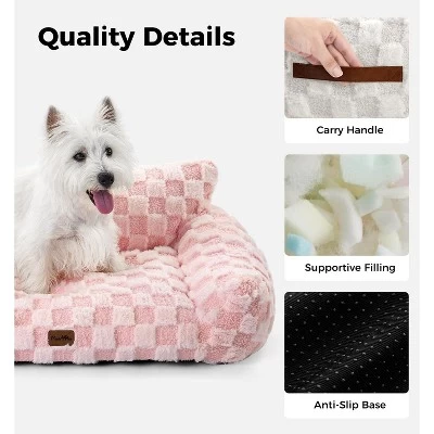 Give your furry friend the ultimate spot to relax with the Made4Pets Cat and Dog Couch, a cozy pet sofa bed designed for indoor cats and small dogs. Featuring a stylish checkered pattern and premium faux fur surface, this fluffy and cute cat sofa instantly adds warmth and charm to any home decor while offering unmatched comfort for your pet.Inside, the soft yet supportive foam base and plush cushioning provide firm support for your pet’s head, neck, and joints, encouraging healthy sleep and deep relaxation. The raised sides and armrests make it easy for your cat or dog to curl up and feel safe, helping to reduce stress and promote a calming, restful environment.Keeping this pet sofa bed clean is hassle-free thanks to the removable zippered cover, which is fully machine washable for easy care and long-term freshness. The durable non-slip base keeps the couch securely in place on any indoor surface, from tile to hardwood, even with active pets jumping on and off.Available in multiple sizes to suit cats and dogs of different breeds, this lightweight and portable cat dog couch is perfect for daily naps, lounging, or cozy snuggles all year round. Its soft faux fur, supportive foam structure, and easy-to-clean design make the Made4Pets Cat and Dog Couch a must-have for any pet parent who wants to create a dedicated, safe, and stylish sleeping space for their beloved pets.