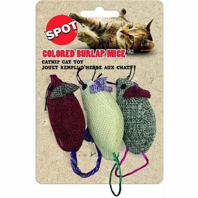 Spot Burlap Mice 3 Pack Assorted is the right size cat toy, the right material cat toy, the right shape (what cat can resist a mouse) and now filled with the right stuff ..catnip.