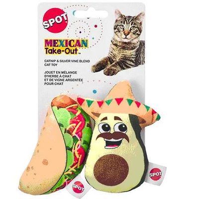 Treat your feline friend to a fiesta of fun with the Spot Mexican Take-Out Cat Toy – 2 Pack! These lightweight, colorful toys are designed to cater to your cat’s natural instincts to pounce, bat, and play. The pack includes two assorted take-out themed toys, each with a mix of enticing textures that feel satisfying under your cat’s claws. The combination of catnip and silver vine inside each toy adds an extra level of excitement, encouraging frisky and playful behavior. Whether your cat is in the mood for a lively play session or just some casual batting, these toys are the perfect addition to their playtime routine. Easy to bat around and great for satisfying their prey drive, these toys will quickly become your cat’s favorite. Each pack includes two toys on a card, offering double the fun for your curious kitty.