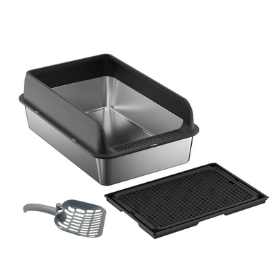 - 【Premium Stainless Steel Construction, Durable and Easy to Clean】Crafted from rust-resistant stainless steel with a splash-proof and non-stick surface. Electrolytic treatment effectively prevents litter buildup, ensuring thorough cleaning with just one rinse. The smooth surface resists dirt accumulation, making daily maintenance effortless. This washable, low-maintenance litter box simplifies care.