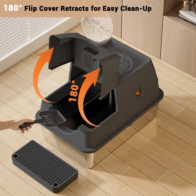 Product Name: Fully Enclosed Cat Litter BoxProduct Material: Plastic+Stainless SteelProduct colors: light gray, black, khakiProduct shape: SquareProduct size: 60x40x44cmHole above the lid: diameter approximately 18cmThe hole on the front of the lid: diameter approximately 20cmProduct weight: approximately 4.9kgInner capacity: approximately 38 litersFeatures: Removable; Prevent taking outApplicable scenarios: living room, bedroom, balcony, cat house, etcApplicable combination: The detachable top plastic cover can be used as a 2-in-1 cat litter boxSpecification: Equipped with pedals and cat litter scoopPacking list:1 x Cat Litter Box1 x Pedal1 x Cat Litter Scoop