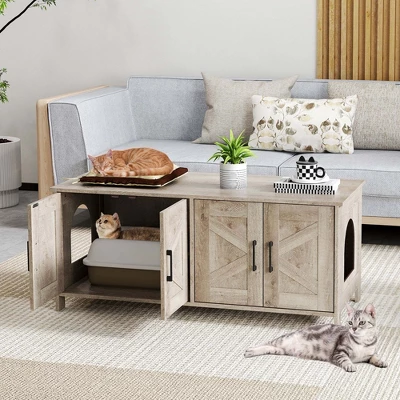 - Stylish Appearance: With its rustic surface finish and unique barn door design, this cat litter enclosure is a blend of charm and modernity. Choose from two elegant colors, oak or white, to complement your home decoration effortlessly.