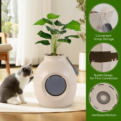 - Innovative Planter Shape Design: This plant cat litter box not only provides private space for your furry friends but also doubles as a decorative home furnishing. Plus a fake plant, this cleverly disguised litter box will blend into any corner of your home.