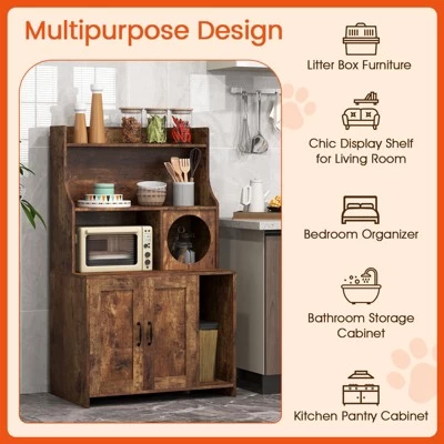 - The cabinet serves as a cat litter box enclosure, cat house, or a storage cabinet