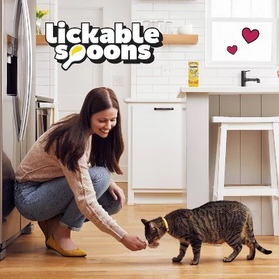 - 4-Pack: Contains four (4) 10-gram spoons of Temptations Lickable Spoons Tasty Chicken and Cheesy Cheese Flavor Adult Wet Cat Treat