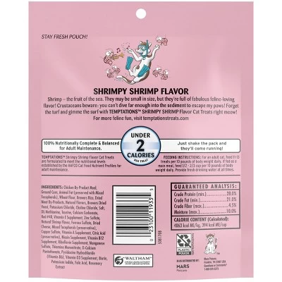 - 6.3 oz. Pouch: Contains one (1) 6.3 oz. pouch of Temptations Classic Cat Treats Shrimpy Shrimp Flavor.