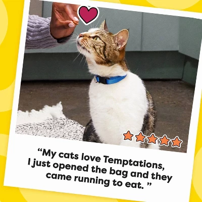 Cats love the delicious, crunchy taste of Temptations, so give your cat purr-worthy Temptations Classic Crunchy and Soft Cat Treats Tasty Chicken Flavor, and they’ll come running the moment you open the pack. Each of these chicken-flavored treats for cats has less than 2 calories and provides an irresistible combination of both crunchy and soft textures. They also come in a stay-fresh pouch, so your feline friend can enjoy their favorite cat snack when you open it, but not when they shouldn’t! These Temptations Classic Cat Treats are a perfect addition to your cat’s regular feeding routine: Use them as a treat, a meal, or a cat food topper. Temptations Classic Cat Treats are the purr-fect way to show your feline friend how much you care.