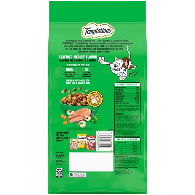 - Contains one (1) 3.15 lb. bag of TEMPTATIONS Seafood Medley Flavor Adult Dry Cat Food