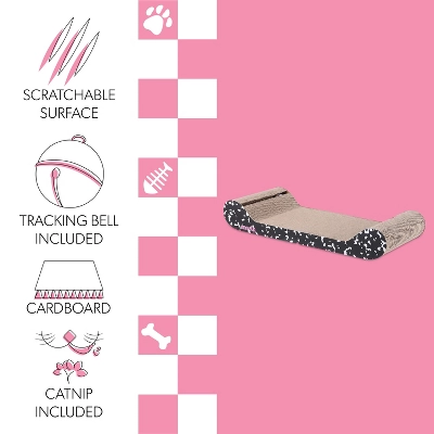 Cats love our lounge scratchers for stretching, scratching or just hanging out. With a curved headrest at each end, the rectangular design appeals to cats who don’t like a soft bed. Bell toys are built in on the sides for extra entertainment.