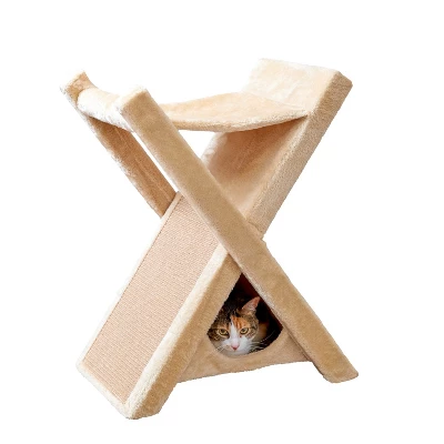 The Two by Two New Orleans is a uniquely designed Folding Cat Scratching Post and Furniture piece with Hammock and hidden Cat Condo. Lots of places for your cat to perch, hide, relax, and sleep. Built in jute rope scratch pad for exercise and play. Folding feature allows for easy storage and portability. No assembly required. 25x21x12 when in use.