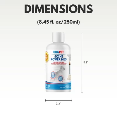 Take your pet’s joint health to the next level with UBAVET Joint Power MEG Maximum Joint Care Liquid. Packed with essential ingredients like Glucosamine, Chondroitin, and Green-Lipped Mussels, this advanced formula offers unmatched joint support, helping to cushion cartilage and reduce inflammation. Omega-3 fatty acids from wild-caught herring oil not only aid joint mobility but also enhance skin and coat health. MSM provides natural anti-inflammatory benefits, and essential vitamins like A, C, and D contribute to bone, kidney, and cardiovascular health.UBAVET Joint Power MEG is easy to use and ideal for both cats and dogs, providing a convenient and powerful solution to keep your pet active, comfortable, and healthy. Whether your pet needs support for aging joints or is recovering from an injury, this liquid formula delivers long-lasting relief and well-being.Ingredients: Glucosamine HCL, Chondroitin Sulphate, MSM, Hyaluronic Acid, Manganese Sulphate, Green-Lipped Mussels, Citrus Bioflavonoids, Fish Oil, EPA, DHA, Vitamins A, D, C, and E.Dimensions: 2.3″x5.2″Item Weight: 0.70 lb