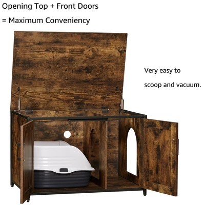 - DURABLE & LARGE: Build with strong and durable pressed wood with metal frame to provide a sturdy structure(Maximum support weight of the top is 185 lbs). Fits most size litter boxes – including extra-large automatic boxes, Breeze XL litter boxes and other high jumbo litter boxes. If you have a large cat, our enclosure is perfect for it.