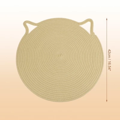 Each cat scratching pad is designed with an ear for hanging, one-piece design is stronger than the adhesive type. In addition, this cat scratching pad is double-sided available.The cat scratching mat is made of woven cotton rope, which is durable and safe for your cats to play and scratch.Redirecting scratching instincts to the mat safeguards your furniture and carpets from claw damage, preserving your home decor.Besides scratching, the mat serves as a cozy lounging spot for your cat, offering a comfortable surface for relaxation and playtime.Cleaning the mat is effortless with a vacuum or brush, ensuring longevity while providing a fresh scratching area for your pet.