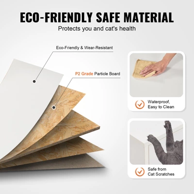 Premium Materials: The P2 grade particle board ensures the health and safety of pets and your whole family. The high-quality finish surface with smooth edges is waterproof, easy to clean and maintain, wear-resistant and damage-resistant, and not afraid of cat scratching. The board is pre-drilled and numbered for your convenience.