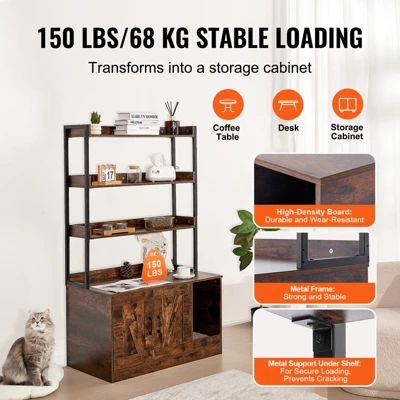 Sturdy and Durable: The cat litter box furniture hidden is crafted from high-density MDF board and features sturdy metal shelves frame, ensuring exceptional durability and stability. Its solid construction allows you to safely place photo frames, decorations, or cat food storage containers on top, supporting up to 150 lbs.