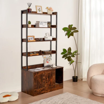 - Includes 4 shelves, 2 doors, and ample space for litter boxes, cat food, and other essentials.
